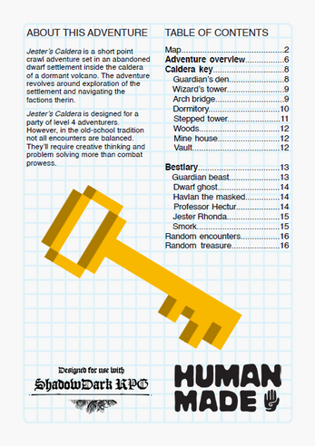 I leaned heavily on a few resources in the making of this. Michael Putlack's Creating and Adapting Monsters for Shadowdark RPG and Sersa Victory's Cyclic Dungeon Generation, cheers! Thanks to all of the wonderful and supportive people on the Shadowdark Discord. It was great to have all of the positive feedback and encouragement! I also want to thank Baron de Ropp of Dungeon Masterpiece for hosting this jam. As someone who is heavily competition-motivated, having a tight brief and timeline was an amazing motivator to create something! A big thanks to my Editor Heather Grey. Finally thank you to my brother for providing lots of frank feedback and encouragement when I sent him drafts.